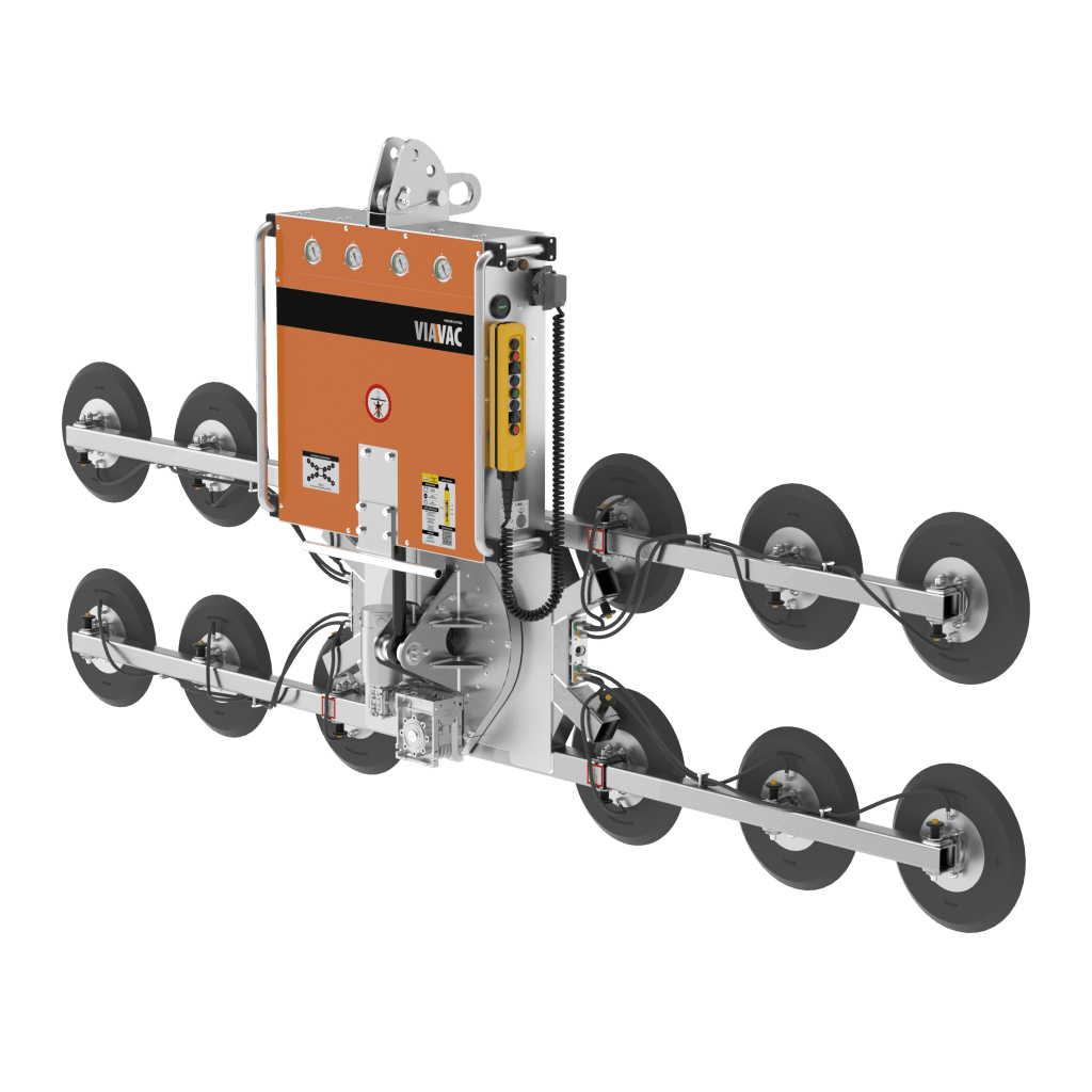 VIAVAC GBH hidrolik eğme mekanizması ile donatılmıştır. Buna ek olarak ekseni etrafındaki dönüş de bir motora entegre edilmiş olup kolayca 360°’ye kadar döndürülebilir. Dörtlü vakum sistemi sayesinde kaldırma kapasitesini tam olarak azami düzeyde kullanabilirsiniz. Vakumlu cam kaldırıcı ile emme ve bırakma işlemlerine kablolu ya da kablosuz olarak uzaktan kumanda edebilirsiniz.